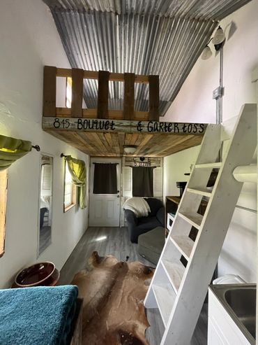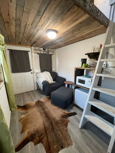 $115: Tiny House (1 loft bed, 1 full bathroom, mini-kitchen)